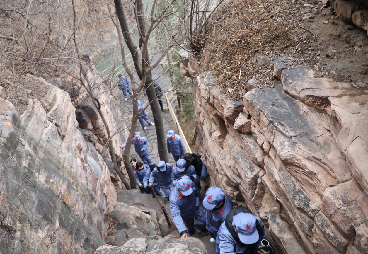 參觀完紅旗渠紀(jì)念館后,為了增強(qiáng)學(xué)習(xí)的直觀感受,大家深入到太行山麓徒步走 5 公里素有“紅飄帶”,“水長城”之稱的紅旗渠的重點(diǎn)咽喉工程--青年洞。沿著渠壁走的這一路看到修建紅旗渠的地方全是由堅(jiān)硬的石頭組成的陡山,更是深深體會(huì)了林州人當(dāng)年修建紅旗渠的艱難。在那個(gè)年代,沒有機(jī)械設(shè)備,又面對(duì)如此困難的自然環(huán)境,修成這樣的一條“人工天河”,當(dāng)年的林州人究竟經(jīng)歷了什么,我們后輩人實(shí)在是很難有切身的體會(huì)。