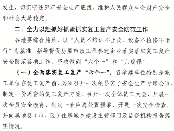 (二)嚴(yán)格做到復(fù)工復(fù)產(chǎn)“六確保”。
