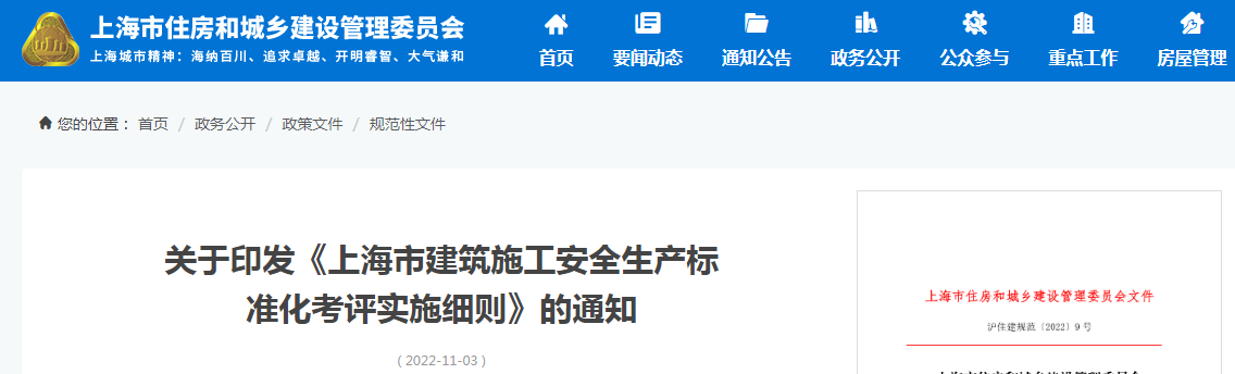關(guān)于印發(fā)《上海市建筑施工安全生產(chǎn)標(biāo)準(zhǔn)化考評實施細(xì)則》的通知