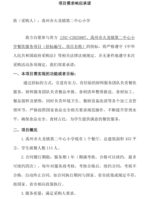 二、采購項目名稱:禹州市火龍鎮(zhèn)第二中心小學(xué)餐飲服務(wù)項目