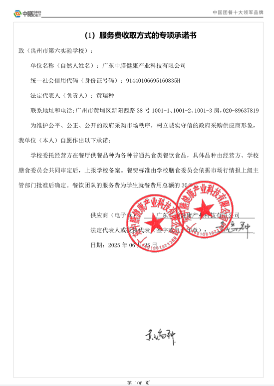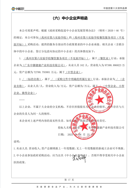 YZCG-DLG2025028 | 禹州市第六實驗學校餐飲服務項目 | 廣東中膳健康產業科技有限公司 | 廣州市黃埔區新陽西路 38 號 1001-1、1001-2、1001-3 房 | ||||