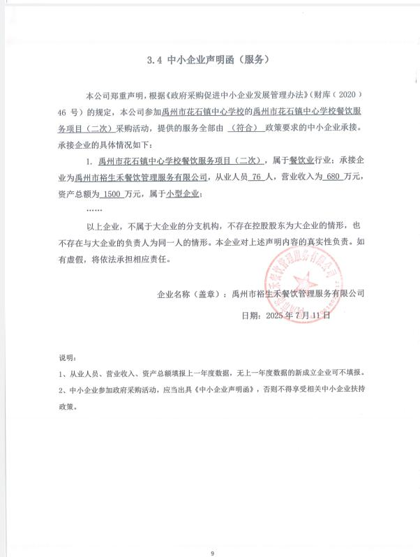 1 | 禹州市裕生禾餐飲管理服務有限公司 | 91.6 | 小型 | 1 |