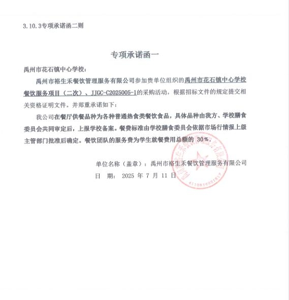 第一成交候選人:禹州市裕生禾餐飲管理服務有限公司