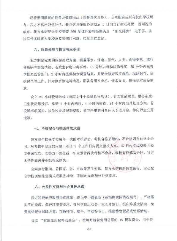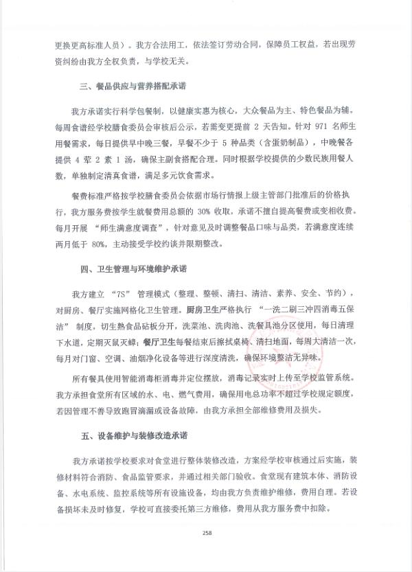 3 | 河南潤德餐飲管理有限公司 | 服務期1年(期滿考核,合格可以續約,最多可續約四次),每年對服務商考核,考核合格后,續約合同;考核不合格,自動終止合同。如合同執行期間與國家、省市政策或規定不符,按國家、省市相應政策執行 | 密封完好 |